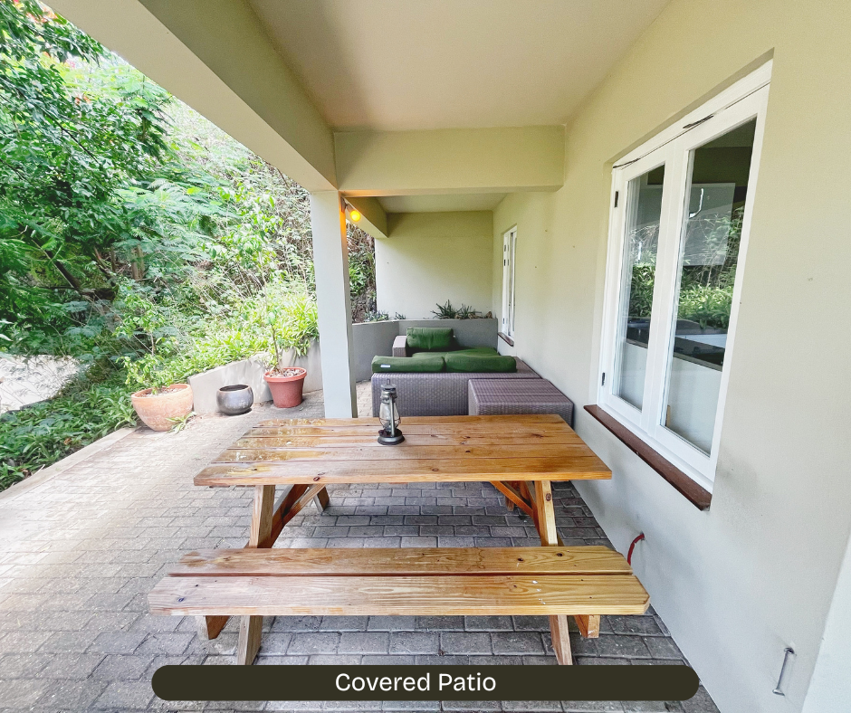 🌿 Large covered patio with lush garden + hillside views πŸŒ…