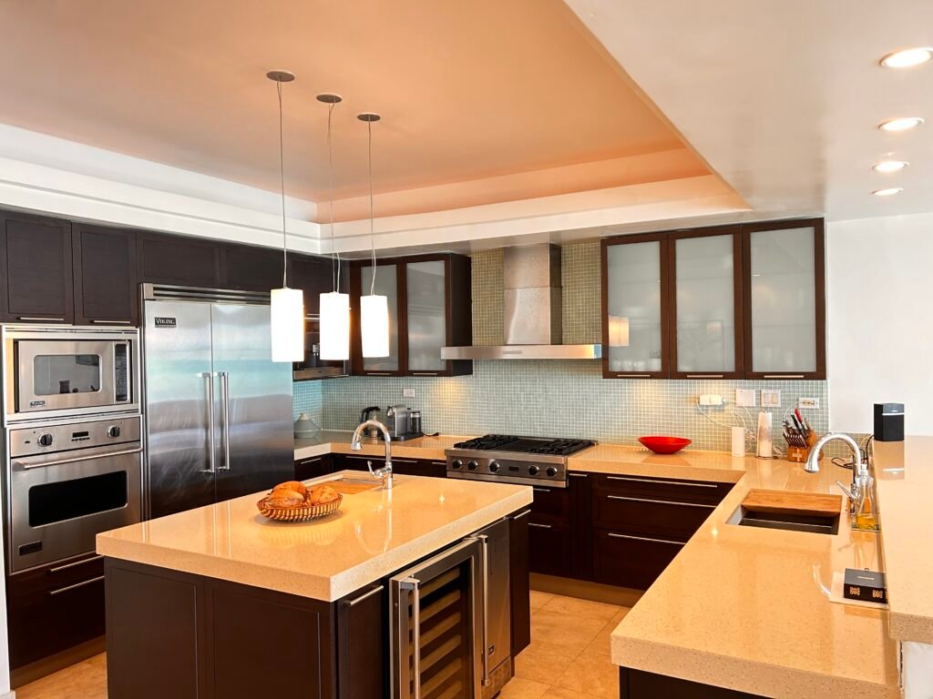 The open-concept kitchen, dining, and living room are designed to let you soak in those ocean views. The kitchen is equipped with high-end Miele appliances, ideal for crafting your gourmet meals in style.