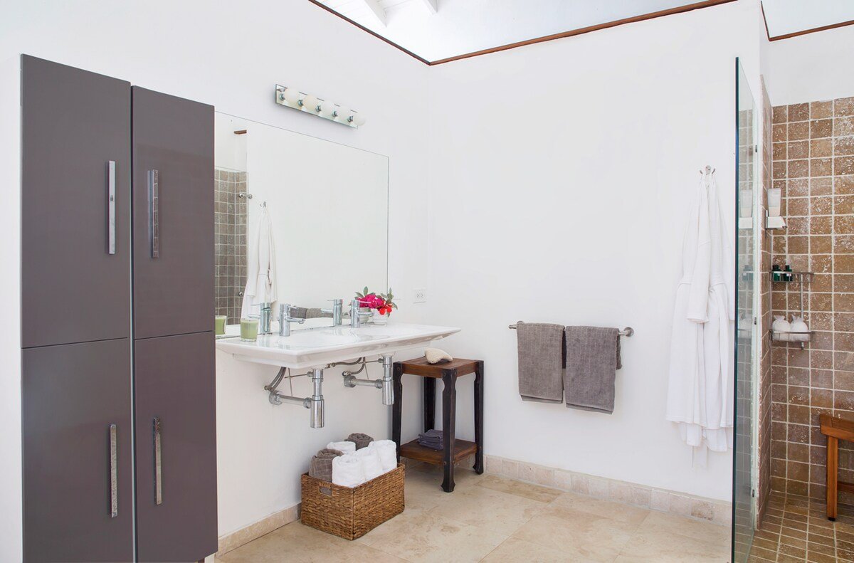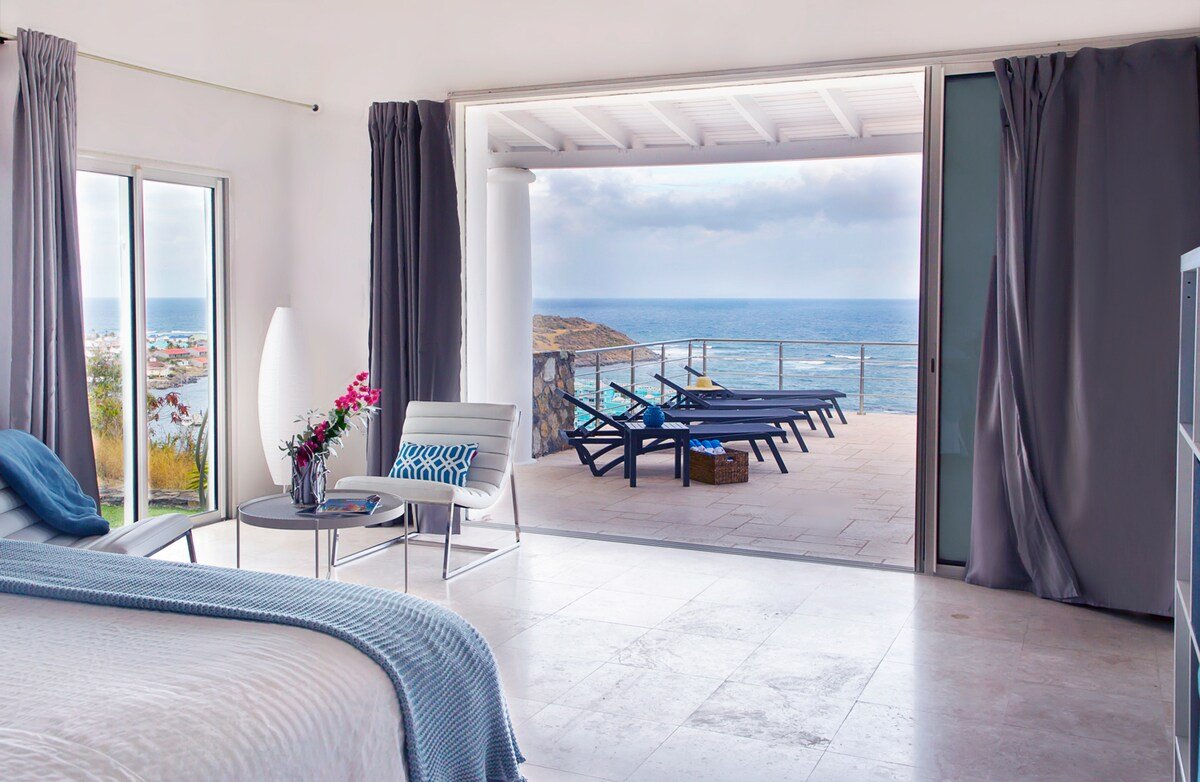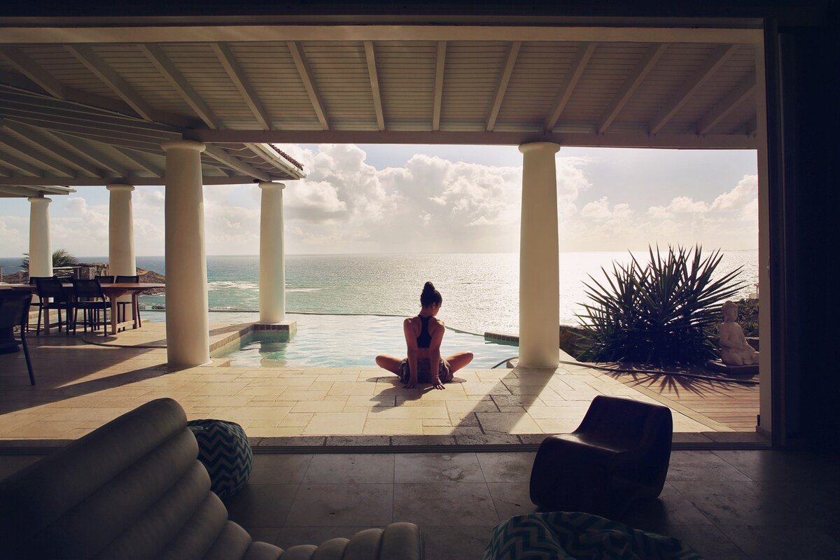 The Blue Door Villa is a massive, luxurious Villa located in Oyster Pond on the Dutch side, minutes from the French border in a quiet gated community. The Blue Door Villa is a perfect place to relax while you listen to ocean waves and swim in the infinity pool. There are multiple outdoor spaces offering privacy or space to gather.