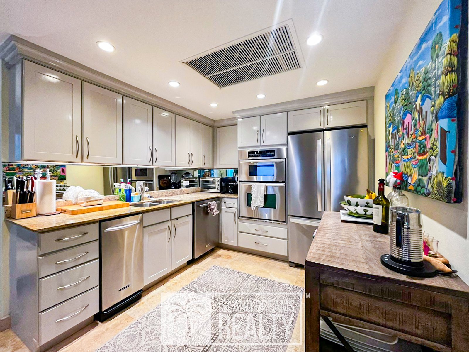 Functionality is a standout feature of this home. Exceptional additional space includes a dedicated laundry room, generous storage, and walk-in closets—rare and highly desirable elements in condominium living. Each bedroom offers its own en-suite bathroom, complemented by a separate guest half bath. The residence is also wheelchair friendly, ensuring comfortable and seamless accessibility throughout.