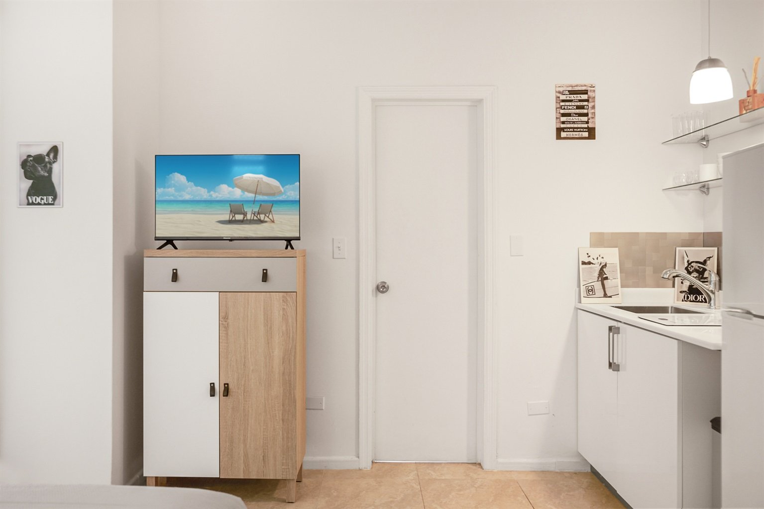 Bright, open living space with modern kitchen and updated bathroom, enjoying beautiful sea views and excellent airflow.