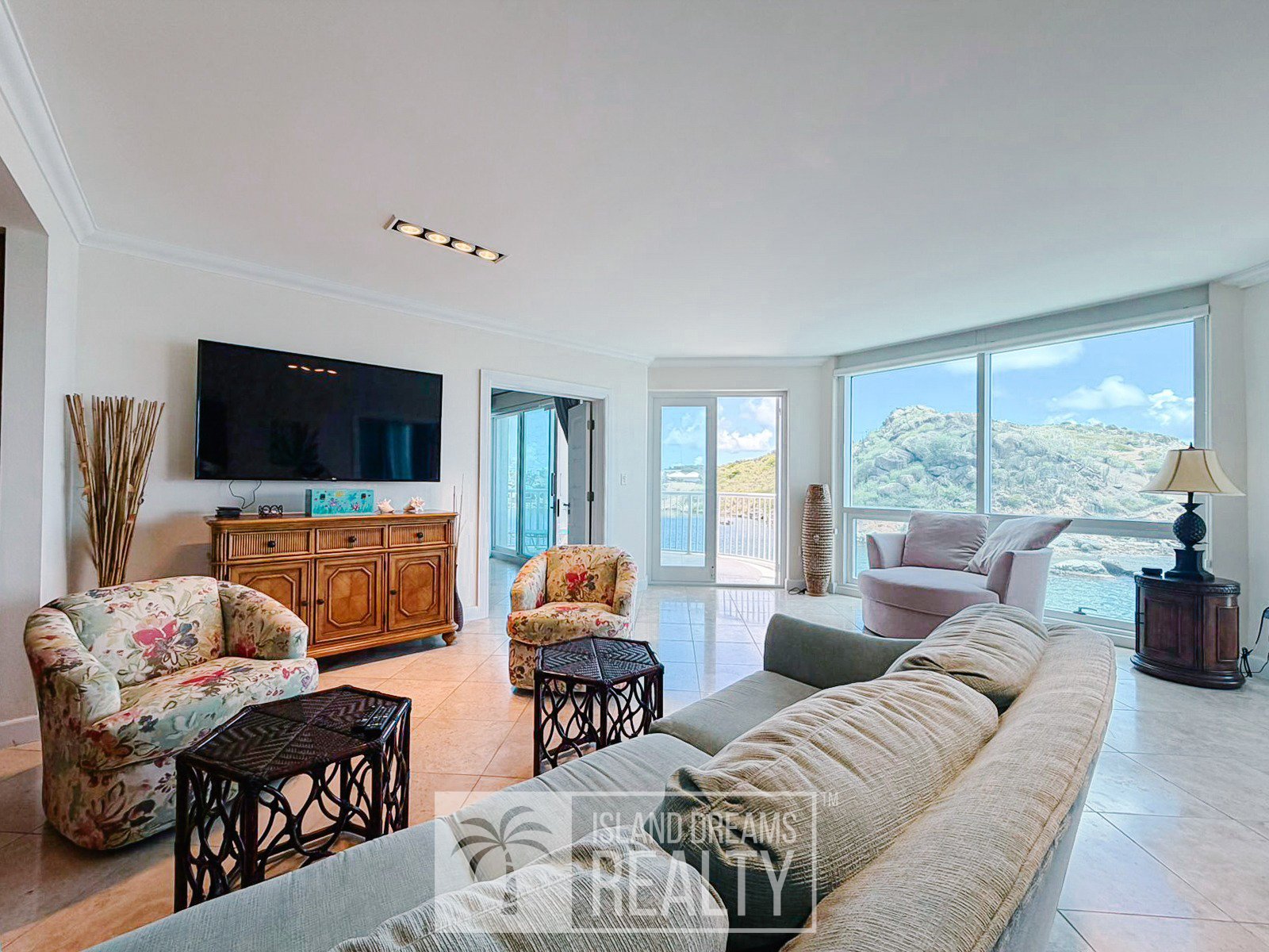 Thoughtfully designed, the home features a balcony in each of the bedrooms, all with water views, capturing the ocean, lagoon, and even neighboring St. Barths. Inside, the residence balances comfort and functionality with refined island living and high-end finishes.