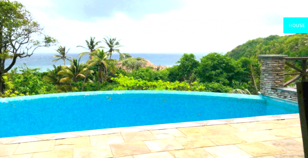 This tropical business with a villa and the 2 cabanas sit on a lush 4 acres, built in 2008, and is perched above the golden sands of the Pointe Baptiste beach in Calibishie. It offers a sophisticated view of the Atlantic Ocean with a private access along a paved walkway to its turquoise waters. The beach caters for romantic strolls, swimming, snorkeling, surfing and just pure relaxation. And a nice private road all the way down through the property almost right to the beach.